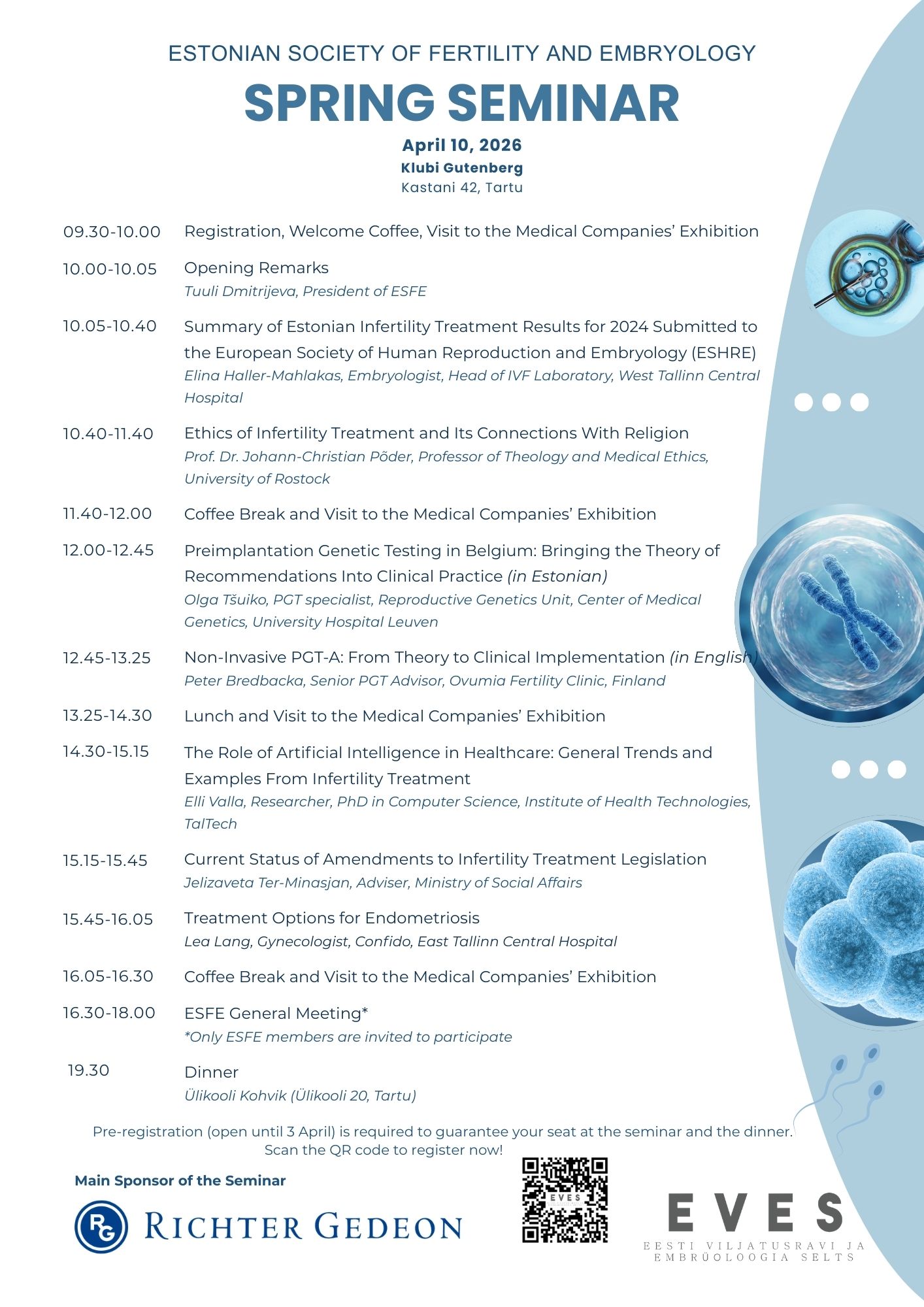 Eesti Viljatusravi ja Embrüoloogia Selts kutsub seminarile, mis toimub 10. aprillil 2026, Tartus, algusega kell 10:00.